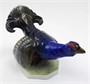Bílý a ručně barevně malovaný porcelán. Autor modelu: Fritz Diller (1875-1946). Název modelu: Birkhahn (Tetřev). Návrh z roku 1913. Číslo modelu: 290. Porcelánka Rosenthal byla založena v roce 1879 Philippem Rosenthalem v německém Selbu. V roce 1929 slavila své 50. výročí. Porcelánová ručně barevně malovaná figura tetřeva v toku. Na nízkém osmibokém podstavci evokujícím zelený palouk. Značeno zespodu: zelená značka Rosenthal platná pro 20. léta minulého století a kulatá zlacená značka připomínající 50. výročí založení firmy s černým nápisem: 50 JAHRE, DIE WELTMARKE. Německo, kolem roku 1929. Výška 8,5 cm, šířka 10,5 cm.