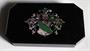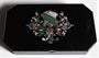 Ploché těžítko na dopisy, černý hyalit, zlacení, emailová malba znaku. Rozměry 7,7 cm x 13,2 cm. Výška 1, 9 cm. Rýhy, otřelé zlacení, uštípnutá hrana. Nový Svět, kol 1830.
