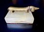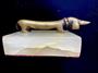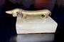 Těžítko bronz jezevčík / dachshund. Původně otevírák na láhve, Vienna 1950 na onyxovém podstavci d12cm v4,5 cm š7,5cm .