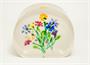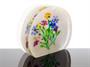 Masivní hutní těžítko celoplošně broušené a leštěné se zataveným dekorem pestrobarevných květin na pozadí z opálového (mléčného) skla. Autorské sklo, které vytvořil huťmistr Josef ROZINEK (*1911 +1992) na huti Hantych v Novém Boru sklo kolem roku 1970. Dobrý stav, rozměr - v. 9,5 x 11,5 x 4cm