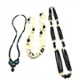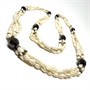 Tři elegantní náhrdelníky s hematity. První - tři řady říčních perel, kontrastně doplněno velkým hematitem. Délka 78 cm. Druhý náhrdelník - tři řady drobných hematitů s bílými říčními perlami. Zapínání obecný kov, délka 60 cm. Třetí náhrdelník zhotoven z hematitů a tyrkysů, délka 47 cm. Výborný stav.