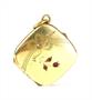 Otevírací secesní medailon, tzv. double, silně pozlacený obecný kov. Buddha z pozlaceného stříbra ryzosti 900/1000 o hmotnosti 0,72 g. Srdíčko double, silně pozlacený obecný kov.