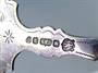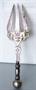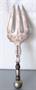 Starý dekorativní trojzubec ze silně postříbřeného kovu s rytým dekorem, neznámé punce (viz foto), funkce nejasná. Délka 16,5 cm, váha 58 g, dobrý stav bez poškození, jen mírné známky stáří a používání.