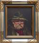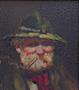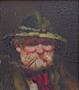 Olej na kartonu 27 cm x 24 cm. Nesignováno. Krakelová malba (technika efektního popraskaného vzhledu) portrétu vousatého tuláka v pomačkaném klobouku s hořícím cigárem v ústech. V profilovaném stříbrném rámu s florálními motivy na zlatavém pozadí v rozích a vnitřní zlatou lištou ohraničenou šedomodrou barvou. Střední Evropa 1920 - 1940. Celkový rozměr s rámem 39,5 cm x 36,5 cm.