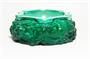 Velký a masivní popelník ve stylu ART - DECO z broušeného a matovaného malachitového ( tzv. JADE ) skla. Po obvodu je velice plastický reliéf čtyř tygrů na lovu s florálním dekorem imitujícím džungli. Provedla krystalérie firma Curt SCHLEVOGT jako součást kolekce luxusního skla INGRID. Dobrý stav ( uvnitř drobná výrobní vada viz posl. foto ), rozměr - prům. 18cm, v. 6,5cm, hmot. 1,9kg