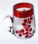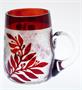 Více než 100 let stará pivní sklenice s uchem, vrstvené sklo - čiré jádro je přejímané rubínovým sklem, které je následně odleptávané. Půllitr byl vyroben na oslavu vzniku Československé republiky, mimo data 1918 nese ještě symboliku vavřínových a lipových ratolestí. Patrně luxusní dar pro význačnou osobnost z období první republiky (monogram J F, nebo J T?). Na čirém skle je filigránsky jemný dekor, nejspíš produkce jizerskohorských skláren Riedel, nebo Krásno nad Bečvou. Dobrý stav, rozměr - v. 12 x 14 x 10cm