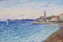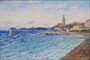 Olej na plátně 29 cm x 42 cm. Signováno vpravo dole s datací 1933. Autor: V. Maljcov. Olejomalba pobřeží Lopudu na stejnojmenném chorvatském ostrově za polojasného dne. Na zčeřených vlnách plující plachetnice a v zadní části vedle domků v zátoce Šunja nacházející se Kostel Panny Marie. V užším profilovaném rámu stříbřitozlaté barevnosti. Chorvatsko, Lopud, rok 1933. Celkový rozměr s rámem 37 cm x 50 cm.