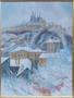 Olej na plátně 85,5 cm x 65,5 cm. Signováno vpravo dole. Pohled na Pražský hrad přes ojíněné větvoví v podhradí. Zlatý jednoduchý dobový rám. Československo, 60. až 80. léta minulého století. Celkový rozměr s rámem 88,5 cm x 68,5 cm.