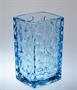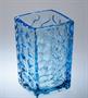 Autorské lisované sklo ve sběratelském odstínu akvamarín, váza hranolovitého tvaru nepravidelného kosodélníku s organickým reliéfním dekorem na povrchu. Autorem návrhu z roku 1970 je sklářský výtvarník Jiří BRABEC ( *1933 + 2005 ), provedla sklárna Rosice součást koncernu SKLO - UNION. Dobrý stav, rozměr v. 18 x 13 x 10cm