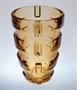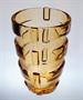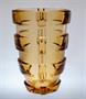 Stylová váza z barevného ručně lisovaného rosalínového skla ve výrazném tvarosloví ART - DECO. Váza má horizontální reliéf, na kterém se střídají lesklé a jemně rastrované plochy, vespod je vlisovaný nápis Czechoslovakia. Autorem návrhu je sklářský výtvarník Rudolf SCHRÖTER ( *1887 ), provedla sklárna Josef INWALD Teplice kolem roku 1930. Dobrý stav, rozměr - v. 20,5cm, prům. 15cm