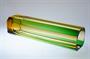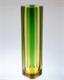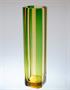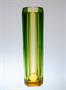 Vyšší a štíhlejší provedení vázy z kolekce skla "DUAL" z probrušovaného vrstveného skla - ambrové jádro přejímané zelenou sklovinou. Minimalistický tvar čtyř velkých fazet, které oddělují zelené fazetky. Autorem je sklářský výtvarník a pedagog Karel WÜNSCH ( *1932 ). Jeho tvorba je zastoupena v mnoha sbírkách, provedla sklárna EXBOR Nový Bor v 70tých letech. Dobrý stav, rozměr - v. 25cm, prům. 7cm