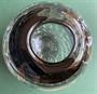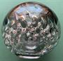 Těžká kulatá váza, v horní části barva šedočerná, postupně ustupující v čiré sklo. Průměr cca 13 cm. Autorská práce signovaná na dně Prof. Habermeier, pravděpodobně 60.-70. léta. Německý oceňovaný sklář Konrad Habermeier (1907-1992), profesor ve Schwabisch Gmund, více viz. Wikipedie.