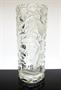 Vzácně vídaná velká a masivní váza z lisovaného skla s květinovým dekorem ve kterém je matovaný reliéf tří nahých žen. Návrh z roku 1981 je dílem sklářského výtvarníka - Miloslav KUBINEC (*1953), provedla sklárna Heřmanova Huť součást koncernu SKLO - UNION. Dobrý stav, rozměr - v. 28cm, prům. 11cm, hmot. 2,6kg