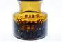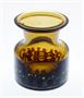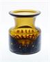 Vázička z topasového skla se zataveným dekorem z kysličníků kovů. Autorem je sklářský výtvarník a pedagog Pavel HLAVA (*1924 +2003), vespod signováno rytím (viz poslední foto - P. Hlava Czechoslovakia HP). Provedla sklárna EXBOR v Novém Boru po roce 1970. Dobrý stav, rozměr - v. 10cm, prům. 9cm