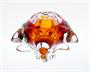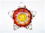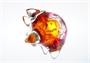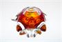 Neobvyklá vázička z krásně barevného skla, rubínové jádro je přejímané vrstvou čiré skloviny a kolem úzkého hrdla přechází v oranžovou. Hutního sklo tvarované do dvakrát pěti výrazných paprsků. Autorem návrhu je sklářský výtvarník, malíř a pedagog Josef Michal HOSPODKA (1923 + 1989), provedení sklárna Chřibská po roce 1980. Dobrý stav, rozměr - v. 12cm, prům. 16cm