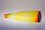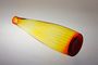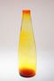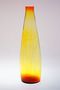 Krásně barevná váza na jeden květ z jantarového skla, které přechází z granátového rubínu do citrínového skla a uvnitř má jemný optický dekor. Autor Jan GABRHEL a provedly sklárny Chlum u Třeboně, dobrý stav, rozměr - v. 22,5cm, prům. 6,5cm