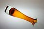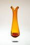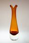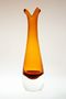 Váza ve tvaru kapky s jádrem z ambrového skla přejmutá čirou sklovinou. Hutně střižené otevřené hrdlo a masivní dno ( tzv. tlustý led ). Autor Milan METELÁK ( *1928 +1993 ), po roce 1960 provedla sklárna Harrachov. Dobrý stav bez poškození, rozměr - v. 24cm, prům. 7cm