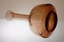 Neobvyklá váza z barevného hutního skla s protáhlým hrdlem na jednu květinu. Topasová sklovina s dekorem zatavených bublin. Provedly sklárny na novoborsku 60-70 letech. Perfektní stav bez poškození, rozměr - v. 29cm, prům. 16cm