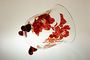Jedinečná váza ve stylu ART - DECO z čirého skla, které je unikátně dekorované kombinací barevné rubínové lazury s rostliným ornamentem a geometrického brusu typického pro ART - DECO. Pravděpodobně práce sklářské školy v Novém Boru nebo Kamenickém Šenově ( Glasfachschule ) kolem roku 1930. Dobrý stav, rozměr v. 19cm, prům. 19cm