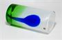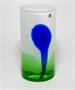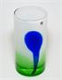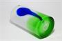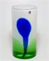 Autorské hutní sklo - váza z opálového skla, která má masivní spodní část ze zeleného Oceanit skla a je přejímaná čirou sklovinou s jemným žebrováním. Váze dominuje kobaltově modrý zatavený ornament ve tvaru ptačího pera. Dochovaná původní nálepka, autorem je sklářský výtvarník, malíř a pedagog Jiří ŠUHÁJEK ( *1943 ) a po roce 1970 provedly novoborské sklárny BOROCRYSTAL. Vespod je broušená čočka po heftu od sklářské píšťaly. Dobrý stav, rozměr - v. 16,5cm, prům. 8cm