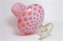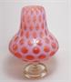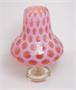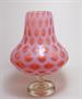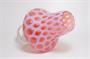 Ojedinělé provedení vázy stojící elegantně na čiré nožce s rubínovým jádrem, které je navrstvené opálovou sklovinou s ornamentem olivek - tzv. optický dekor, který vytváří při průhledu zajímavé vizuální efekty. Autorské hutní sklo z kolekce "FLORET", návrh pochází z roku 1965 od sklářského výtvarníka a malíře - Milan METELÁK ( *1928 +1993 ), provedení: sklárny Borské sklo závod Harrachov. Dobrý stav, rozměr - v. 23cm, prům. 16cm