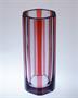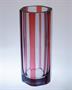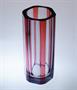 Stylová váza ze souboru "DUAL" z masivního probrušovaného vrstveného skla - ametystové jádro přejímané rubínovou sklovinou. Jednoduchý šestiboký tvar z velkých fazet, které jsou odděleny proužky rubínového skla. Autorem je sklářský výtvarník a pedagog Karel WÜNSCH ( *1932 ). Jeho tvorba je zastoupena v mnoha sbírkách a je také autorem návrhů skla a keramiky pro horský hotel a vysílač na Ještědu. Dobrý stav, rozměr - v. 20cm, prům. 8,5cm