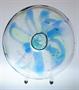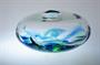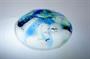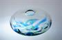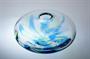 Masivní váza čočkovitého tvaru s organicky tvarovaným hrdlem z autorského hutního skla. V čiré sklovině je zatavený dvoubarevný modrozelený ornament a dekor vzduchových bublinek. Hutní váza je dílem sklářských výtvarníků - Luboš METELÁK ( *1934 ) a Oldřich LÍPA ( *1929 ), provedla sklárna MOSER Karlovy Vary po roce 1970. Dobrý stav, rozměr - v. 12cm, prům. 22cm, hmot. 2,9kg