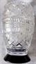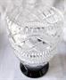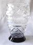 Váza z čirého bohatě broušeného skla je posazená na černé patce. Podle provedení jde o sklárnu Nový Bor kolem roku 1940. Váza je velmi dekorativní, nepoškozená, vysoká 19,5 cm, o průměru patky 10 cm, o průměru vázy v nejširším místě 13 cm.