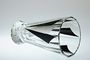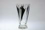 Luxusní vázička otevřeného tvaru stojící na patce ve stylu ART - DECO. Fazetově broušené čiré sklo malované technikou Švarclot ( Schwarzlot ) tedy malbou černým vypalovaným smaltem a matováním. Sklo z první třetiny minulého století, provedly krystalerie severních Čechách pravděpodobně Karel PALDA Nový Bor. Dobrý stav, rozměr v. 13,5cm, prům. 8cm