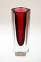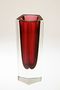 Váza tvarovaná fazetovým broušením do pěti hran s krásně barevným rubínovým jádrem, které je přejímané masivní čirou sklovinou. Elegantní váza - objekt, autor návrhu sklářský výtvarník Pavel HLAVA ( *1924 +2003 ) a v 70tých letech provedla sklárna EXBOR v Novém Boru, dobrý stav, rozměr v. 14cm, prům. 5cm