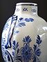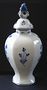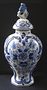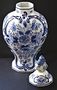 vyklenuté,nahoře s úchytem ve tvaru stylizované postavy lva.Víčko u úchytu lepené.Značeno zespodu-Delft,dílna U porcelánové lahve,Holandsko,minulé století.