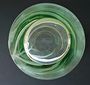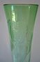 Sklo čiré,zeleně sbíhané,opticky žebrované.Válcovitého projmutého tvaru,s plným kulatým dnem.Hluboce rytý dekor stonku s listy a květem kosatce.Výška 34,5 cm.Značeno zespodu leptanou značkou.Československo 20.století.