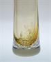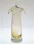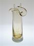 Autorské hutní sklo - váza s ambrovým jádrem a zataveným dekorem jemných bublinek. Nad hrdlem vázy jsou hutní výčnělky tzv. Rohy. Autorem návrhu z roku 1971 je sklářský výtvarník a pedagog Karel WÜNSCH ( *1932 +2020 ). Jeho tvorba je zastoupena v mnoha našich i zahraničních sbírkách. Provedla sklárna Ústředí uměleckých řemesel Škrdlovice. Dobrý stav, rozměr v. 23cm, prům. 10cm