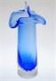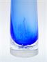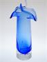 Autorské hutní sklo - váza s kobaltově modrým jádrem a zataveným dekorem bublinek. Nad hrdlem vázy jsou hutní výčnělky tzv. Rohy. Autorem návrhu z roku 1971 je sklářský výtvarník a pedagog Karel WÜNSCH (*1932 +2020). Jeho tvorba je zastoupena v mnoha našich i zahraničních sbírkách. Provedla sklárna Ústředí uměleckých řemesel Škrdlovice. Dobrý stav, rozměr v. 22,5cm, prům. 10cm