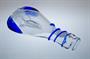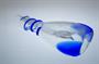 Ateliérové sklo z poloviny minulého století, větší hutní váza organického tvaru z čirého skla s průnikem uprostřed, zataveným jemným skleněným vláknem a dekorovaná kobaltově modrými nálepy. Autorem je pedagog a sklářský výtvarník prof. Jaromír ŠPAČEK ( *1911 +1988 ), velký experimentátor nových sklářských technik. Práce kolem roku 1960 Nový Bor. Dobrý stav, rozměr v. 28 x 15 x 7cm