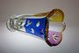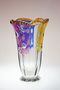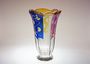 Masivní váza z fazetově broušeného čirého skla, které je dekorované do vlnek broušeným hrdlem a třemi barevnými lazurami s geometrickým probrusem typickým pro 30. léta minulého století. Pravděpodobně provedla sklárna Adolf RASCHE Haida (Nový Bor) dobrý stav bez poškození, rozměr - v. 23cm, prům. 14cm