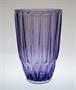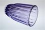 Velice vzácně vídaná váza z autorského lisovaného skla v pěkném barevném odstínu Ametyst, která má po celé ploše geometrický reliéf s kónickým žebrováním. Autorem návrhu kolem roku 1960 je sklářský výtvarník Miloš FILIP (*1926 Prostějov +1966 Praha), studium na VŠUP u prof. Karla Štipla. Provedení sklárny koncern SKLO - UNION. Dobrý stav, rozměr - v. 21cm, prům. 13,5cm
