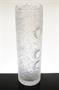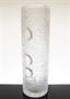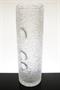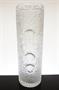 Velká váza z čirého skla s třemi hutními vpichy a jemnou rastrovanou strukturou, která evokuje ledový povrch. Masivní váza má jednoduchý minimalistický tvar a vespod je broušená čočka po heftu od sklářské píšťaly. Autorem návrhu je sklářský výtvarník Jan GABRHEL (*1930 +2017), provedla sklárna Český křišťál Chlum u Třeboně po roce 1970. Dobrý stav, rozměr - v. 33cm, prům. 10cm