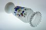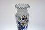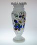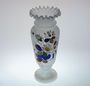 Půvabná smaltem malovaná váza balustrového tvaru z jemného opálového skla s hutně tvarovaným hrdlem do mnoha drobných vlnek. Krásná práce sklářů z druhé poloviny 19. století, autenticitu stáří skla potvrzuje množství zatavených vzduchových bublinek uvnitř skloviny. Vespod je heft od sklářské píšťaly. Dobrý stav rozměr - v. 22cm, prům. 9cm