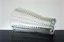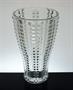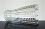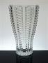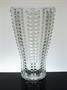 Vzácně vídané extra velké provedení vázy z autorského lisovaného skla. Masivní čiré sklo s geometrickým dekorem jemným pyramidek, návrh z roku 1958 pochází od sklářského výtvarníka - Jiří ZEJMON ( *1925 + 1987 ), provedla sklárna Rudolfova huť součást koncernu SKLO-UNION. Dobrý stav, rozměr v. 25cm, prům. 15,5cm, hmot. 1,9kg