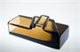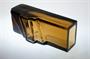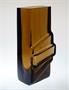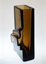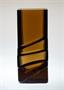 Váza z masivního topasového skla foukaná do kovové formy připomínající ikonickou vázu od Geoffrey BAXTERA "Opilý zedník" ( z r.1966 ), má na čelní ploše velmi vystouplý geometrický reliéf. Tato váza je pravděpodobně dílem sklářského výtvarníka a šperkaře - Václav HANUŠ ( *1924 +2009 ), návrh kolem roku 1970 a provedení Jablonecké sklárny závod Desná. Dobrý stav, rozměr - v. 21,5 x 8,5 x 7,5cm, hmot. 1,8kg