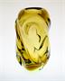 Masivní hutní váza s topasovým jádrem, které je přejímané uranovým sklem (uranové sklo při nasvícení UV světlem vytváří výrazný luminiscenční efekt viz foto 1, 4 a 5). Autorské hutní sklo po roce 1954 od sklářského mistra a výtvarníka - Jaroslav BERÁNEK (*1927 +2006). Provedení ve sklárně Ústředí uměleckých řemesel Škrdlovice. Dobrý stav, rozměr - v. 24cm, prům. 12cm
