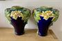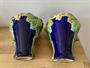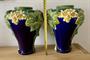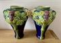 Párové secesní vázy, keramika(majolika), s plastickým květinovým secesním motivem, velmi dobrý stav, z doby kolem r. 1900, výška cca 28 cm.