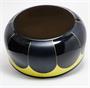 Neobvykle velká mísa z černého neprůsvitného manganového skla, které imituje polodrahokam Onyx. Je také podobné vzácnějšímu hyalitovému sklu. Míse ve stylu ART - DECO dominuje ručně malovaný geometrický ornament a černé plošky se střídají lesklé a matné. Mísa pochází z první poloviny minulého století, pravděpodobně z krystalerií v Jizerských horách. Dobrý stav, rozměr - prům. 25cm, v. 11cm