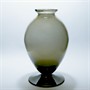 návrh a provedení 30. léta, podle barvy skloviny asi sklárna Lausitzer Glaswerke, Německo, pro kterou Wilhelm Wagenfeld v té době navrhoval, výška 32 cm, do formy foukané kouřové sklo. Pozn.: Váza se objevila v jednom starém českém filmu 30./40. let jako dekorace, bohužel jsem zapomněl titul filmu.