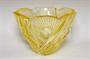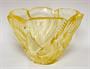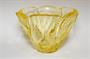 Luxusní váza otevřeného tvaru celoplošně zušlechtěná broušeným dekorem ve stylu ART - DECO z krásně barevného velmi masivního ( tl. stěny 1,5cm ) citrínového skla. Stylový skleněný objekt s hluboce broušeným geometrickým ornamentem, pravděpodobně provedla umělecká krystalerie Rudolf HLOUŠEK Železný Brod ve 30-40tých letech. Dobrý stav, rozměr - v. 18cm, prům. 24,5cm, hmot. 4,3kg!!