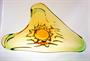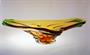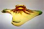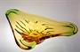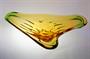 Mísa ze souboru hutního skla "NIAGARA" z krásně barevného hutně tvarovaného skla - ambrové sklo v kombinaci se zeleným Oceanit. Masivní mísa organických tvarů stojí stabilně na patce, ambrové jádro je přejímané čirou sklovinou a ovíjené zeleným spirálovitým nálepem, jako stylizovaný proud padající vody. Autorem kolekce "NIAGARA" je sklářský výtvarník František ZEMEK ( *1909 +1965 ) a po roce 1960 provedla sklárna Mstišov u Teplic. Dobrý stav, rozměr š. 42 x 26 x 11cm, hmot. 2,8kg