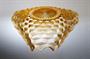 Neobvykle tvarovaná velká trojboká mísa s hlubokým kubizujícím reliéfem na vnější straně. Barevné ručně lisované sklo v odstínu rosalín z první třetiny minulého století. Autorem návrhu je pravděpodobně sklářský výtvarník Rudolf SCHRÖTER ( *1887 ), provedla sklárna Josef INWALD Teplice. Dobrý stav, rozměr - prům. 34cm, v. 11cm