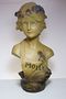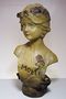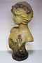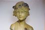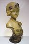 Velice líbivá busta dívky v secesním dekorativním stylu Alfonse Muchy - MOLLY. Přibližný rok výroby kolem 1900-10, patinovaná alabastrová sádra, na zadní straně značeno vtlačeným číslem 885. V dobrém stavu, rozměr - v. 43cm, š. 20cm