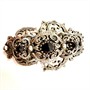 Velmi detailně zdobená velká výstřihová spona. Váha šperku 42,17 g ! Šperk byl zhotoven v druhé polovině 19.století ze stříbra ryzosti 800/1000. Šperk je osazen třemi velkými almandiny. Rozměry 6,5 x 4 cm. Šperk může být nošen jako zasunovací ozdoba výstřihu či jako závěs. Perfektní stav. Řetízek není součástí prodeje.